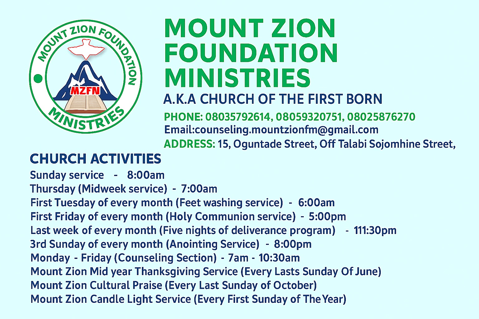 Mount Zion Foundation Ministries — Began with a heart for God and a passion for souls.